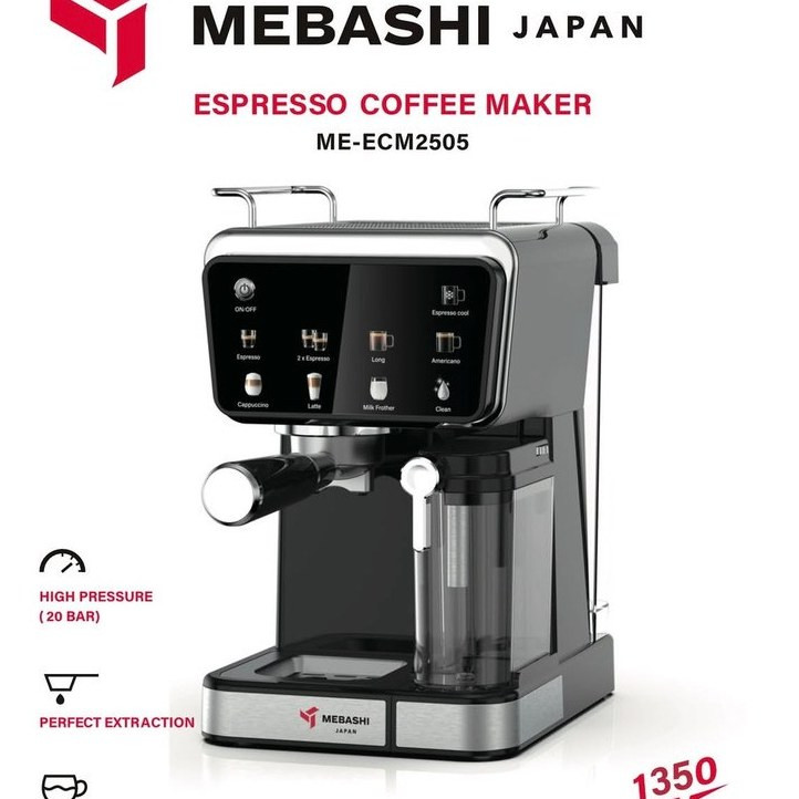 اسپرسوساز مباشی مدل ME-ECM2505 یک دستگاه خانگی با طراحی مدرن است که برای تهیه اسپرسو و نوشیدنیهای مبتنی بر قهوه مانند کاپوچینو و لاته مناسب است. این مدل دارای ظرفیت مخزن آب ۱.۵ لیتر، توان مصرفی ۱۳۵۰ وات و فشار بخار ۲۰ بار میباشد که عصارهگیری مناسب را فراهم میکند.12 سیستم گرمایشی ترموبلاک آن گرم شدن سریع آب را تضمین کرده و صفحه نمایش لمسی برای کاربری آسان دارد.1 این دستگاه با بدنه ترکیبی پلاستیک و استیل، برای استفاده روزمره در آشپزخانههای خانگی طراحی شده است.3